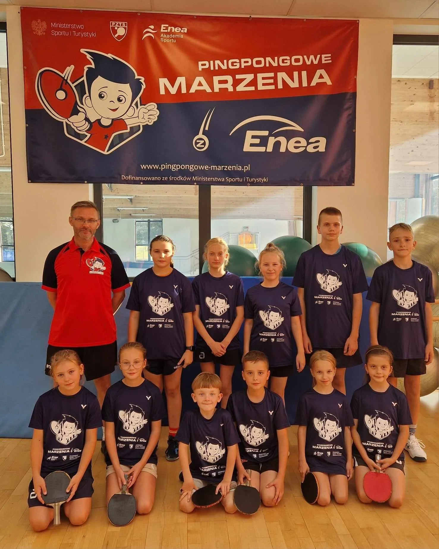 Sezon 2024/2025 rozpoczął się na dobre . Dzisiaj dotarła miła niespodzianka z Polskiego Związku Tenisa Stołowego . Więc dzielimy się informacją. Cieszymy, że kolejny raz otrzymujemy koszulki , które są nagrodą za naszą pracę, zaangażowanie oraz medale imprez krajowych i wojewódzkich, które przez kilka lat wywalczyliśmy . Dzięki kilkuletniemu udziałowi w programie otrzymaliśmy różnego rodzaju sprzęt , który pozwala nam podnosić umiejętności. Była maszyna, piłki, rakietki, okładziny, a także mnóstwo gadżetów , które nas mobilizują do jeszcze cięższej pracy. Dzisiejszy prezent traktujemy jako podziękowania za aktywny udział w programie " Pingpongowe Marzenia z Eneą. Dziękujemy Pani Marta Adamczak za współpracę życząc sukcesów zawodowych. Dziękują dzieci , rodzice, zarządu klubu i trener Rafał.