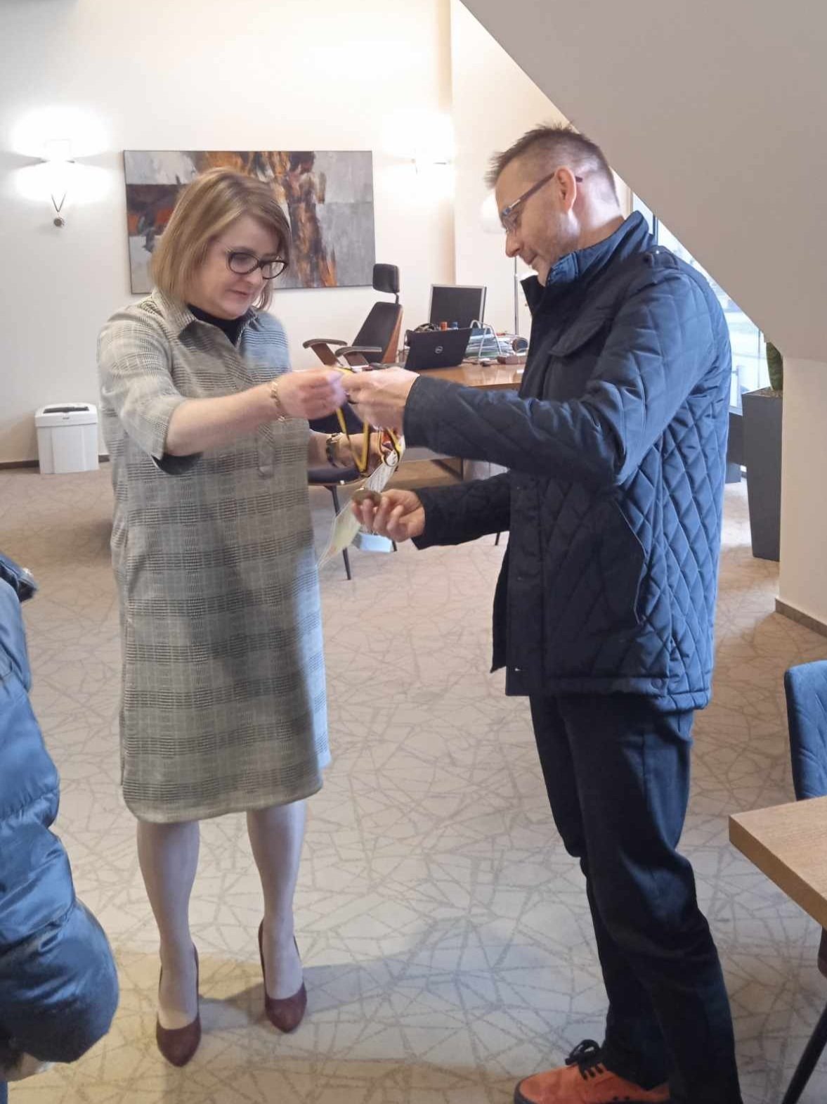Puchar Drużynowych Mistrzostw Dolnego Śląska Młodziczek dla Prezes Banku Spółdzielczego w Miliczu Pani Katarzyny Wencek. Zgodnie z wieloletnią tradycją nagrodę jaką udaje nam się wywalczyć podczas zawodów drużynowych przekazujemy bądź włodarzom lub sponsorom, którzy od wielu lat nas wspierają i pomagają. W dniu dzisiejszym przedstawicielka srebrnej drużyny Zosia Pawłowska w imieniu swoich koleżanek Ewy Kierońskiej i Poli Olszewskiej przekazała wywalczoną nagrodę na ręce Pani Katarzyna Wencek. Była to dobra okazja, żeby podziękować za wsparcie jakie od wielu lat otrzymujemy. Wiarę w nasze sukcesy i trzymanie kciuków podczas startów milickich tenisistów stołowych. Podczas spotkania zostało oczywiście wypowiedziane wiele ciepłych i miłych słów pod naszym adresem. A to dowód, że współpraca na lini Bank - UKS "Lider " jest wzorowa. Dziękujemy Pani Prezes, że mimo wielu obowiązków znalazła chwilę czasu na spotkanie i rozmowę oraz za niespodzianki jakie otrzymaliśmy.