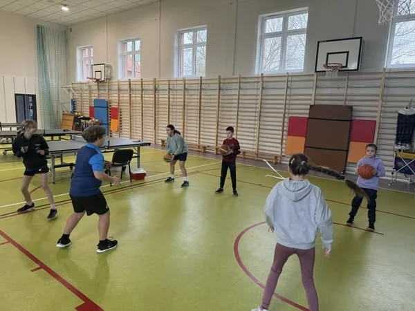 Z kozłowaniem nie było większych problemów, ale przy zmianie ręki to zadanie okazało się odrobinę trudniejsze. Jutro zajęcia rozpoczniemy kolejną dyscypliną. Dzień po dniu dzieci poznają zasady z wielu dziedzin sportu, a my tą wiedzę wykorzystamy jako uzupełnienie w tenisie stołowym
